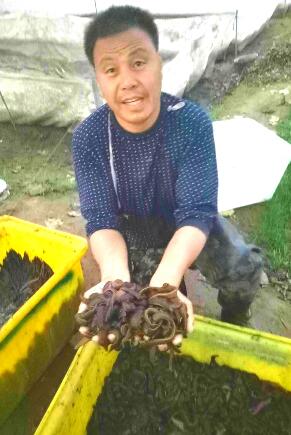 郯城县马头镇新型职业农民、敬伟家庭农场蚂蝗养殖场主陈敬伟致富不忘众乡亲,主动参与精准扶贫之列,把精准扶贫做到了“外地,积极采取无偿技术“遥控指挥”与“回收保本”养殖经营与统一销售的措施,不仅扩大了蚂蝗养殖规模,而且还使贵州的王盛,河南的李德法、安徽的王辉等15个贫困家庭脱贫致富,年收入达四五万元。(高军 摄影)