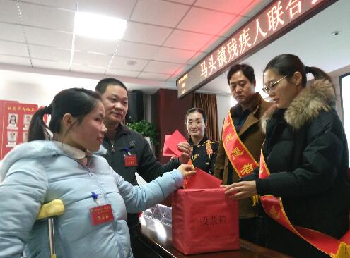 临沂民生网讯:12月9日,郯城县马头镇残疾人联合会第七次代表会代表,在志愿者的帮助下为参加县代表大会选举中投好“神圣一票”。