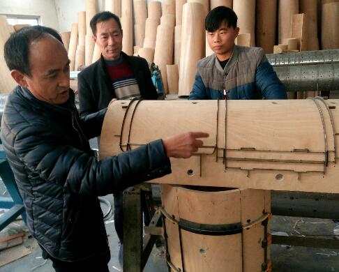 临沂民生网讯:12月10日,郯城县佳豪包装器材厂厂长齐金国(左),正在介绍自己“智能模具”出高效的样品。