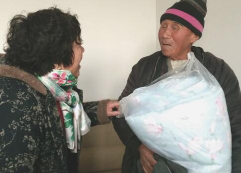 临沂民生网讯:1月11日,郯城县马头镇玉带社区村支部书记吴艾清,将“温暖过冬”的棉被送到特困户高丙秀手中,他紧紧地抱住了棉被。至此,山东省郯城县500名特别困难群众均收到了“温暖过冬”的棉被。
