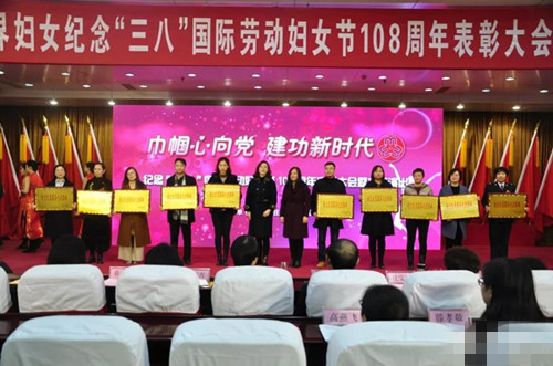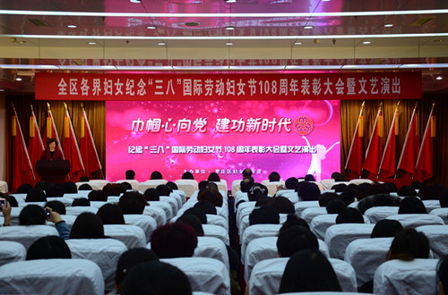 巾帼心向党·建功新时代。为深入学习宣传贯彻习近平新时代中国特色社会主义思想和党的十九大精神,纪念“三八”国际妇女节108周年,3月7日上午,罗庄区妇联举行“巾帼心向党·建功新时代”纪念“三八”国际妇女节大会。区委副书记王士力;区委常委、宣传部长王兆艳;区人大常委会副主任、区纪委廉政教育中心主任杜宝珍;区政协副主席、红十字会会长何雪;区政府副区长王晖青;区循环经济示范区主任徐秀兰及有关部门负责同志出席了会议。区政协女委员,各镇街、各部门主要领导和受表彰的先进集体和先进个人共400余人参加。