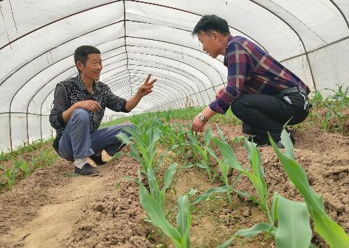 今年市场行情看好,这7亩大棚移栽育苗玉米长势喜人,估计再有两个月就能上市,按每亩6000个棒子计算不低于1.2元钱,仅粘玉米一项就能收入5万元的毛利。(高军 摄影)