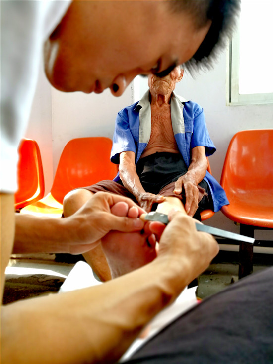 谢有钦师傅的团队为老人们修脚更是不怕脏、不怕累,让患足病的老人去除痛苦。