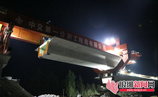 10月18日晚,鲁南高铁沭河特大桥最后一孔箱梁精准就位(上图),