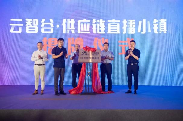 在兰华集团党委书记兼董事长曹继廉、市工商联短视频直播商会执行会长杜滨、杭州魔星文化传媒董事长秦卫国的见证下,兰山商城管委会产业发展部主任杜庆明与智顺科技/云智谷董事长刘建军共同为云智谷·供应链直播小镇进行揭牌。
