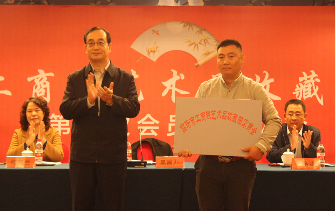 11月24日,临沂市工商联艺术品收藏拍卖商会成立大会隆重召开。市委统战部副部长、市工商联党组书记吴昌力,市工商联党组成员、副主席许金涛,市工商联调研员纪庆兰,市工商联副主席、糖酒食品总会会长刘广宝,市工商联塑化行业商会会长林殿会,平安银行临沂分行小企业部总经理徐大勇等领导出席成立庆祝大会。