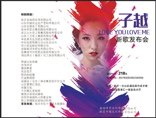 2017年6月24日,子越将首次在家乡临沂举办个人新歌发布会,届时,两首新歌【Love You Love Me】和【Darling】将同时全网上线。