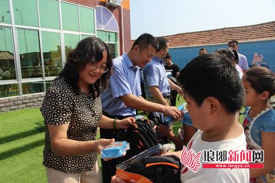 领导及爱心人士为孩子们分发文具