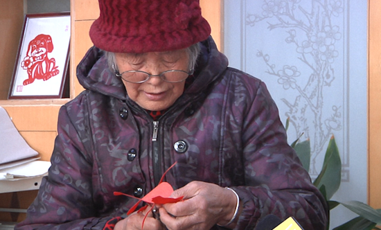 据了解,79岁的张芳春老人,剪纸的时候离不开眼镜,不戴眼镜看不清,就像蒙了一层东西一样。虽然眼睛不好,张芳春还是每天坚持剪纸5-6个小时,老人说只要剪纸,自己心里就会很开心。