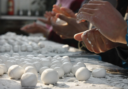 市区的一些街道还能寻觅到传统手工元宵的踪影,但是很多人都会选择去超市购买看起来更干净、口味更多的速冻元宵。