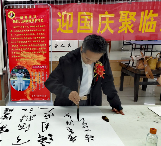 9月29日上午,迎国庆临沂贵烟行者书画交流笔会在临沂锦城艺术品交易中心麒麟武术馆举行。活动由贵州中烟工业有限责任公司主办,临沂琅琊志愿者协会、临沂武协八卦掌工作委员会承办。