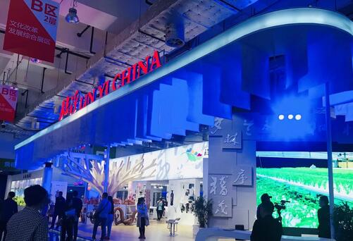 第七届山东文博会上的临沂展区以书法为主要设计元素。