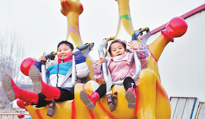 2月5日,河北石家庄新乐市伏羲公园,小朋友在游乐设施上玩耍。 |