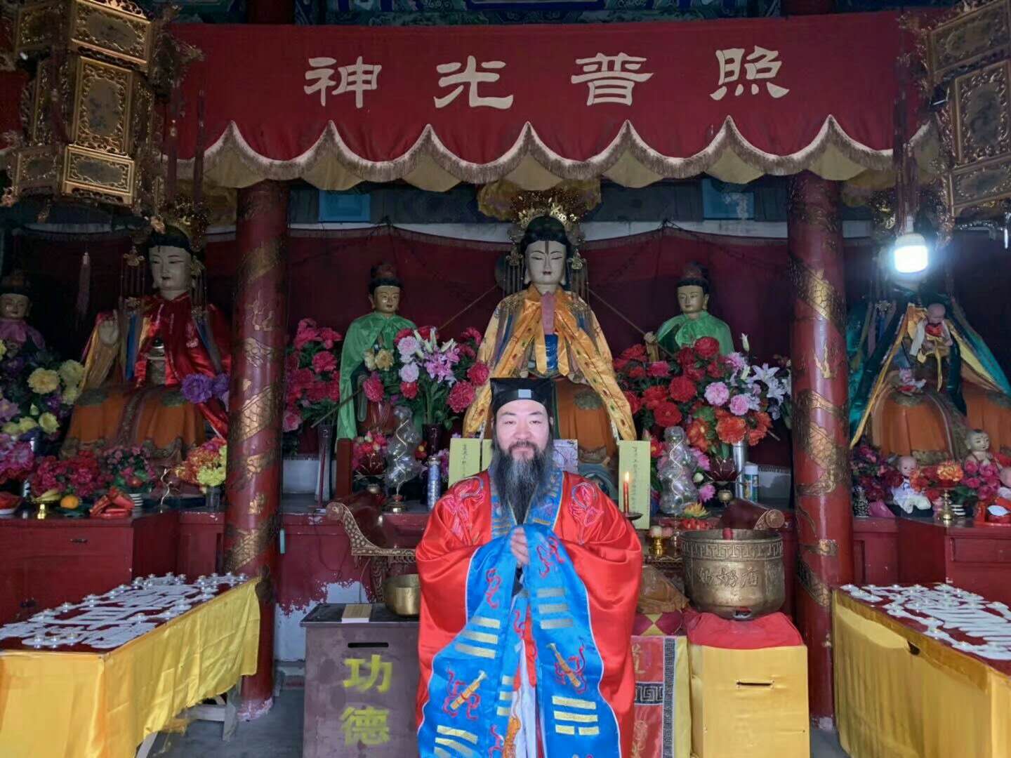 霍怀虚道长,俗名:霍德忠。山东平原县人,自幼信仰道教,1985年到泰山碧霞祠出家到今,拜师张常明先师门下,全真龙门金山派第22代玄裔弟子。1989年于北京白云观受戒于方丈大师王理仙,受戒道号洞玄子。现在任山东道教协会副会长,灵应宫主持。