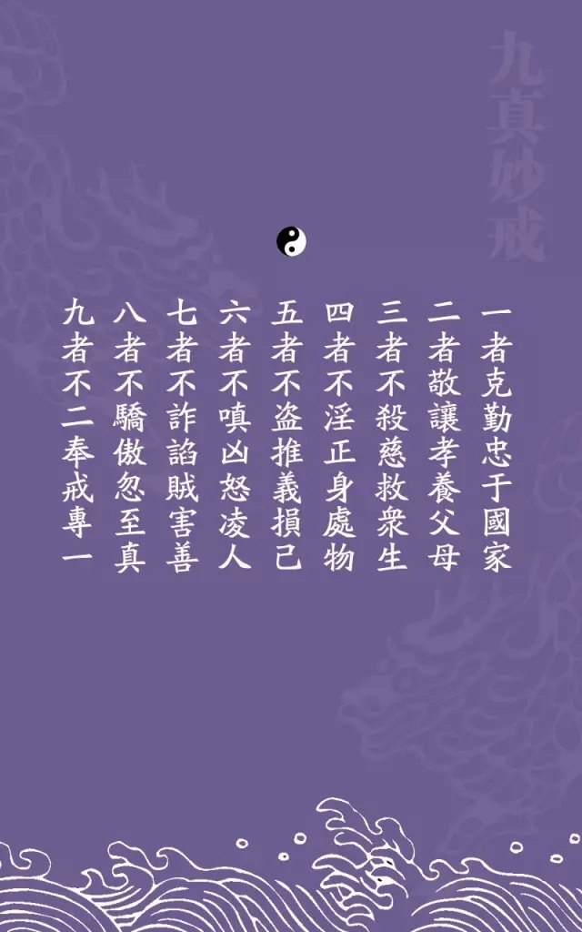 九真戒亦称“九真妙戒”,据《北帝伏魔神咒妙经》卷六称,此戒内容为: