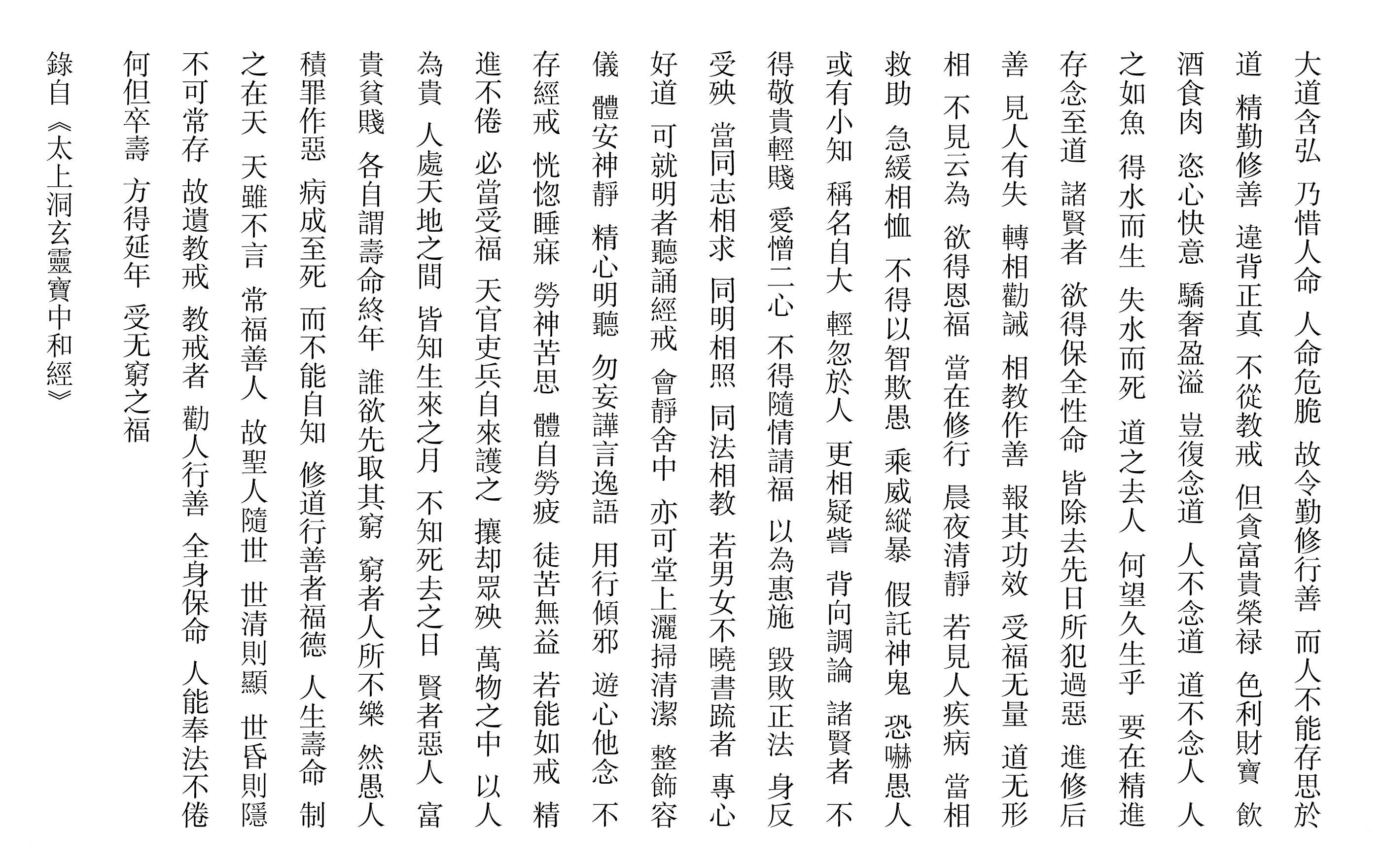 《太上洞玄灵宝中和经》(简称《中和经》),收录于明《正统道藏》太平部。抄经文字底本出处:《道藏》(三家本)第二十四册,第696—697页。