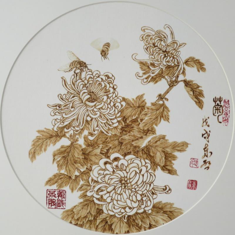 早期烙画多在木板或葫芦上画,现在发展到在丝绢、皮革、宣纸上画。